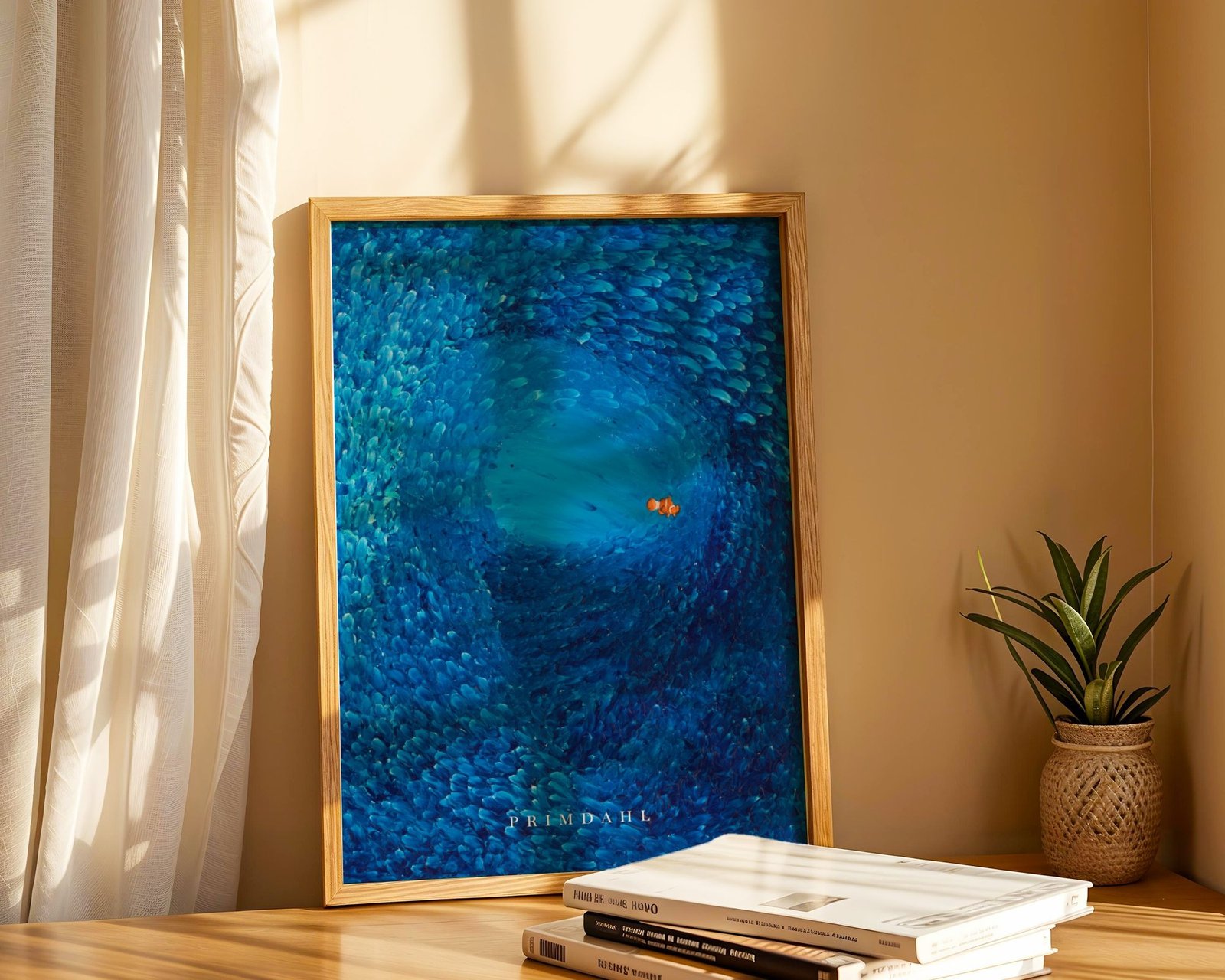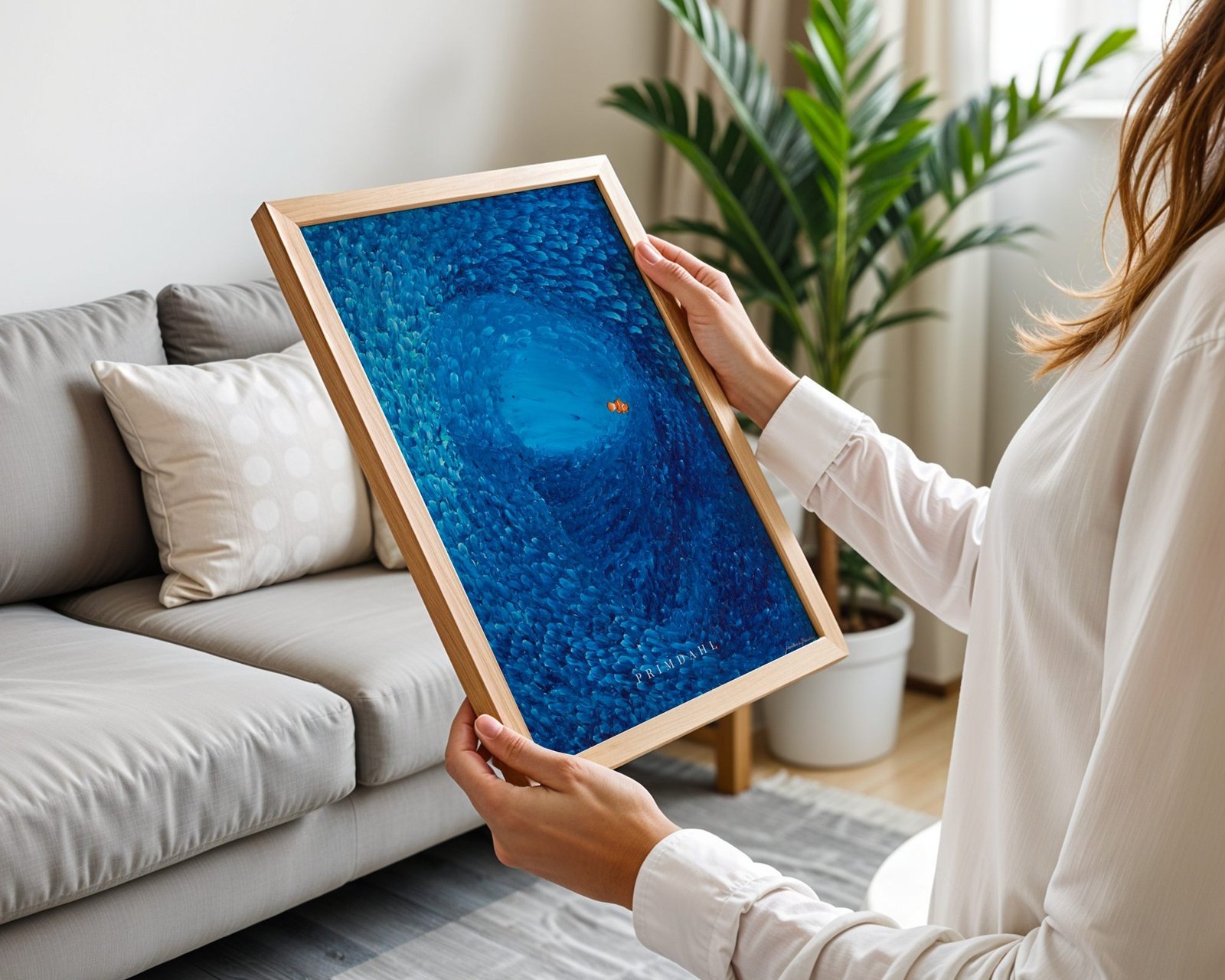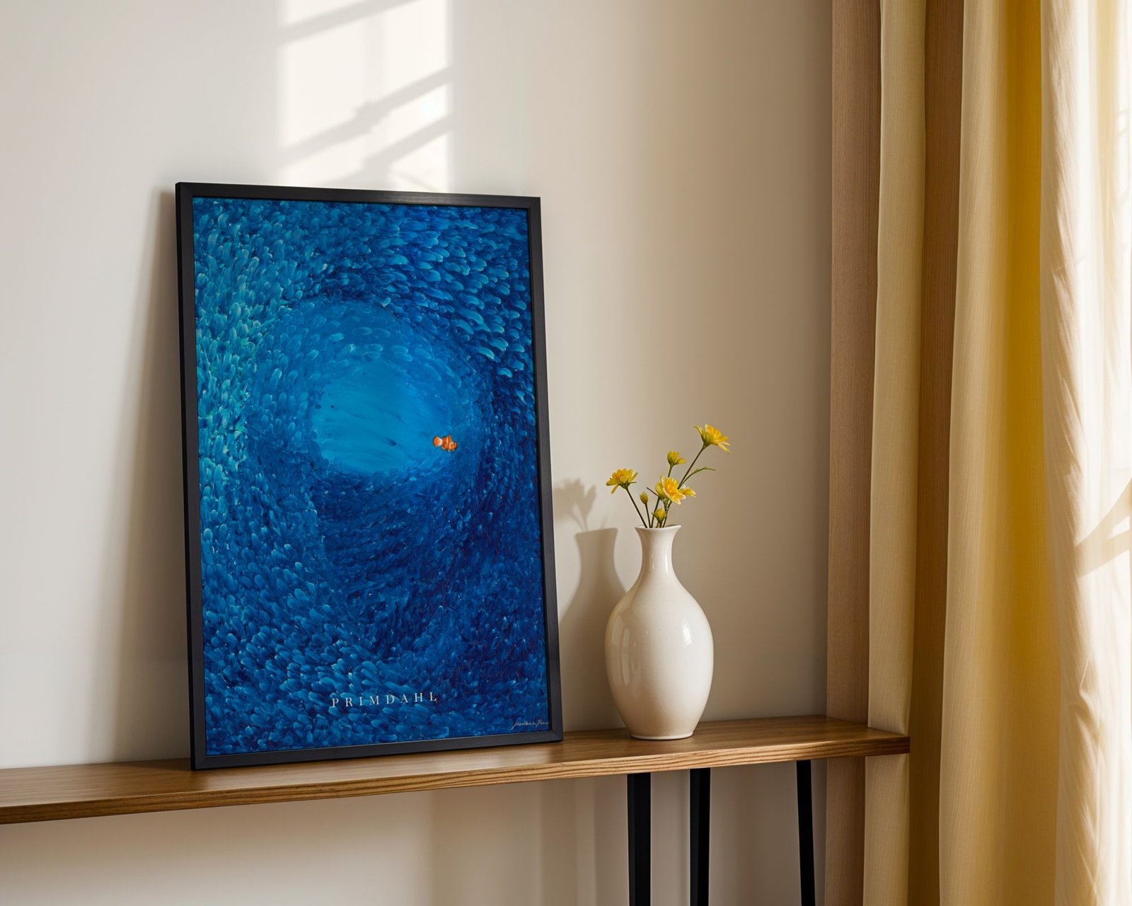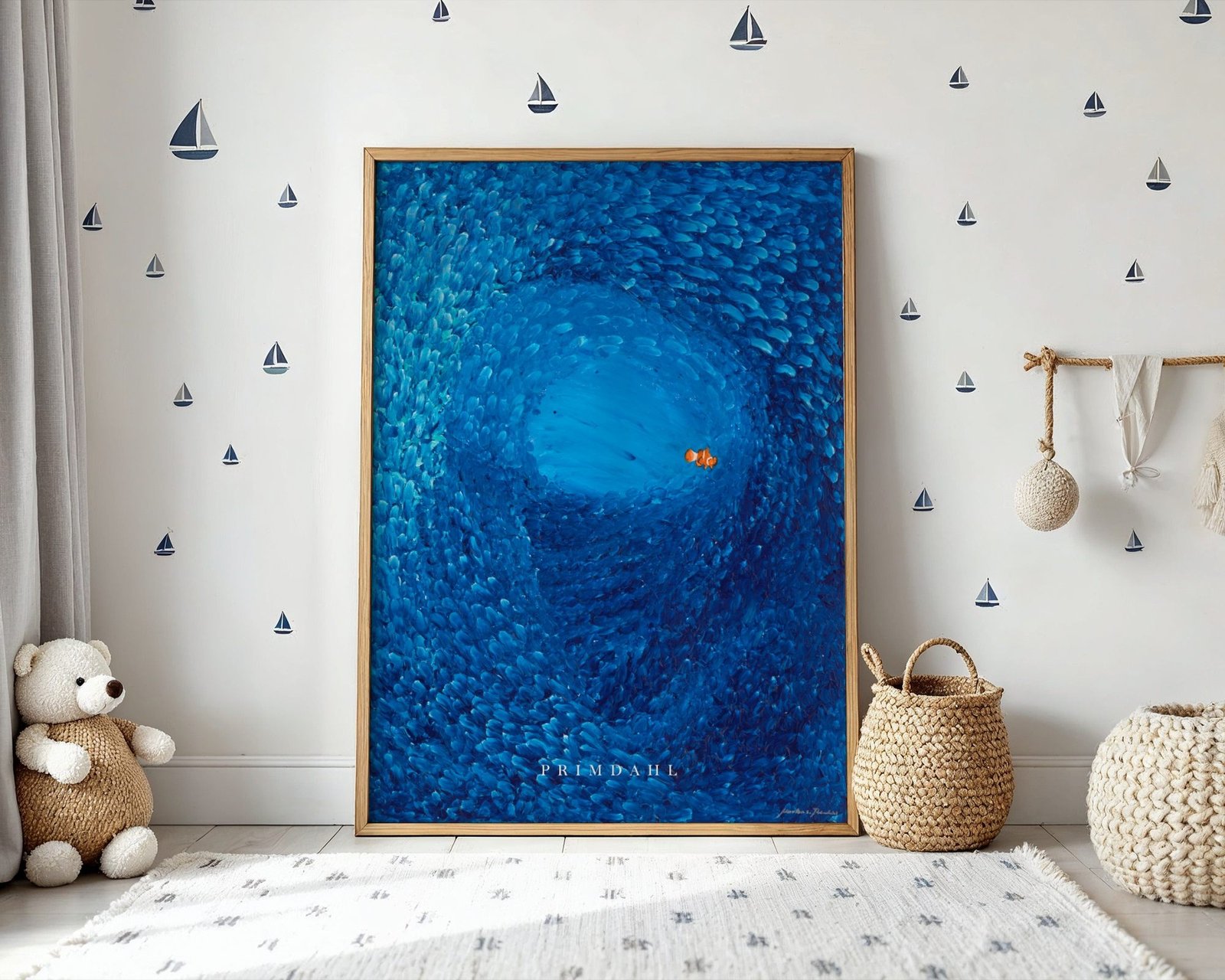 Vælges ramme, leveres plakaten indrammet med klart, splintsikkert akrylglas som er et let og mere slagfast alternativ til traditionelt glas, velegnet til brug i hele hjemmet, herunder også børneværelser. Rammen leveres klar til ophæng.